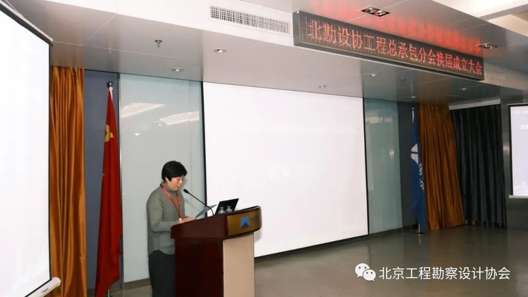 北京工程勘察設計協會副秘書長王鳳琴,受協會八屆二次常務理事會委托,宣讀《關于成立“北京工程勘察設計協會工程總承包分會”的決定》,宣布工程總承包分會正式成立,并同意任命張日同志擔任分會首屆會長。