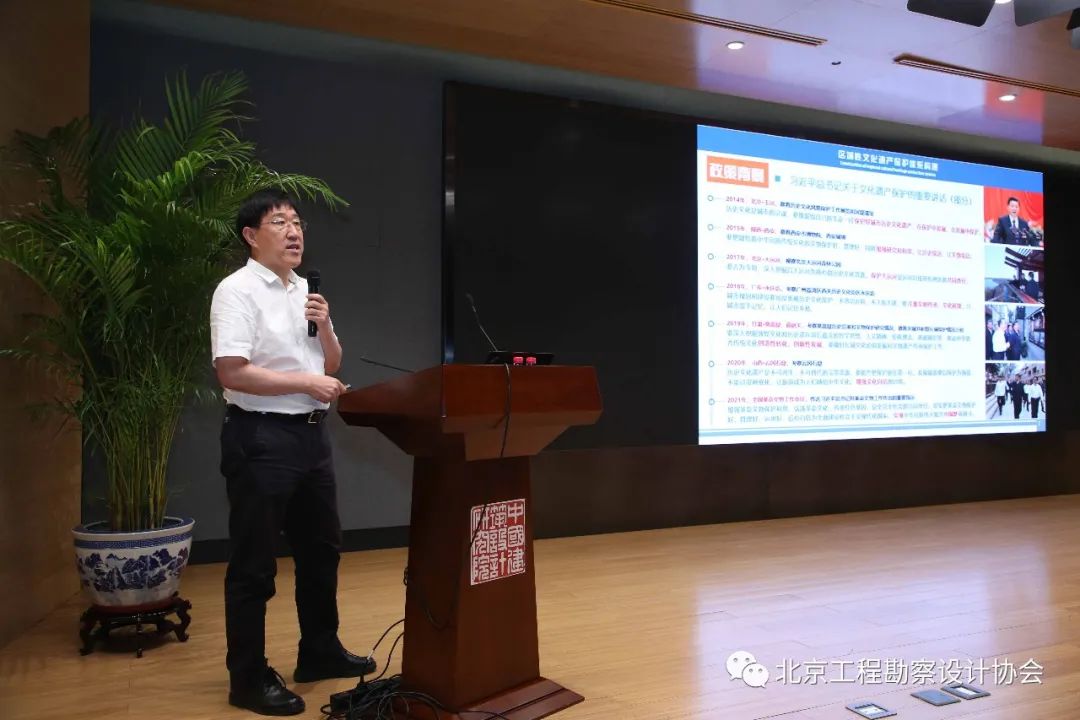 北勘設協秘書長胡頤蘅首先致辭,對分會的成立表示了祝賀,指出北京城市新總規將歷史文化名城保護工作作為重要內容,傳統建筑分會的成立正是協會在引領行業單位建設北京首都風貌的角色方面發揮行業組織應有作用這一社會責任的體現。提出2021年北京勘察設計領域的形式與任務,并祝愿分會今后的各項工作順利開展。