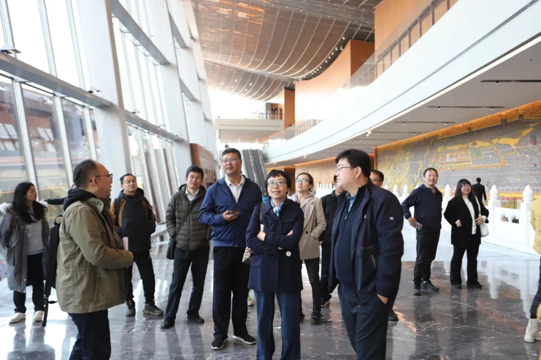 參觀團隊參觀了北京城市圖書館,在以銀杏葉片和森林山谷為設計元素的“森林書苑”中體驗了將森林景觀與圖書閱覽區融為一體、極具親和力的公共開放空間。北京藝術中心被譽為“文化糧倉”,參觀團隊隨講解員分別參觀了歌劇院、音樂廳、戲劇場、小劇場、綠心露天劇場等公共服務空間。北京大運河博物館由共享大廳、展陳大樓(主樓)和休閑水街共同組成,團隊在項目設計人鄭旭航的帶領下參觀學習了北京大運河博物館的設計理念、特色亮點和技術難點。相關項目的綠建顧問、設計負責人與參觀團隊進行了充分的技術交流,為大家提供了寶貴的實踐經驗。期間,團隊參觀了位于張家灣設計小鎮未來設計園區的北京市建筑設計研究院,經過對老廠房的改造,現已變身為觀景辦公室、集裝箱會議室、法桐林銅牛廣場等富有文化特色的創新設計園區和活力開放街區。此外,參觀團隊還在北京京東方技術創新中心了解了京東方在智慧城市公共服務、智慧能源、智慧零售、智慧醫工/移動健康、智慧金融、工業互聯網、智慧出行等方面的先進技術和產品。