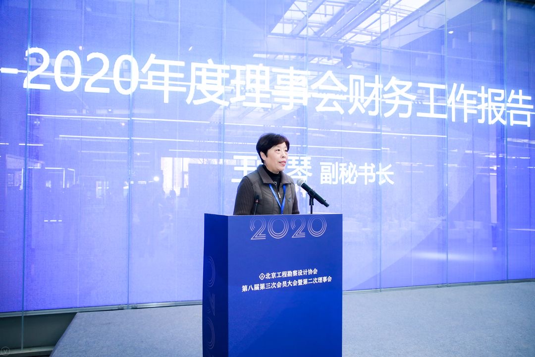 北京市規劃和自然資源委員會二級巡視員陶志紅、北京市通州區人民政府副區長蘇國斌、中國勘察設計協會副理事長兼秘書長王子牛出席會議并講話,北京工程勘察設計協會會長徐全勝作《2020年理事會工作報告》,副秘書長王鳳琴作《2020年理事會財務工作報告》,監事李正平作《2020年監事會工作報告》。