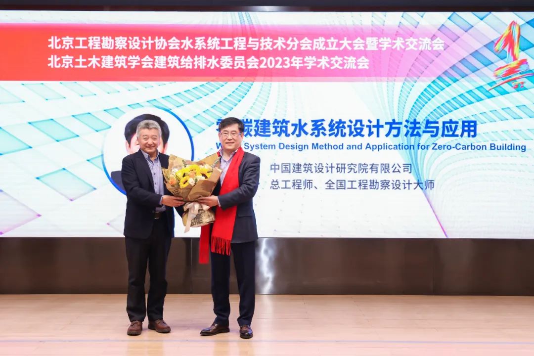 戴明華副會長宣讀了《北京工程勘察設計協會水系統工程與技術分會工作條例》,表示分會將嚴格按照條例的相關要求開展具體工作。趙鋰會長向大會做《北京工程勘察設計協會水系統工程與技術分會籌備工作報告和工作設想》,表示分會立足于北京地區,為北京的給排水行業人員提供了一個新的交流創新平臺,分會全體成員要緊密團結,高標準高質量開展各項工作,為北京市地區的建設和人才培養做出貢獻。最后,林坤平副會長宣讀《北京工程勘察設計協會水系統工程與技術分會第一次成員單位大會決議》,決議對水系統分會組織機構成員的任命、工作條例和工作報告進行了書面確認,并提交北京工程勘查設計協會辦公室備案。上午大會在歡快愉悅的氛圍中落下帷幕,所有代表進行了集體合影留念。下午,水系統分會聯合北京土木建筑學會建筑給排水委員會召開了一場盛大的學術交流會,來自北京地區設計院的200多位給排水專業人員報名參會,任南琪院士、彭永臻院士、張韻大師和趙鋰大師分別做了《城市水系數字孿生規劃與智慧管控》、《關于我國城市污水處理排放標準的思考與建議》、《韌性城市內澇災害防治的思考與實踐》、《零碳建筑水系統設計方法與應用》學術報告,提供了一場精彩紛呈的學術饕餮盛宴。