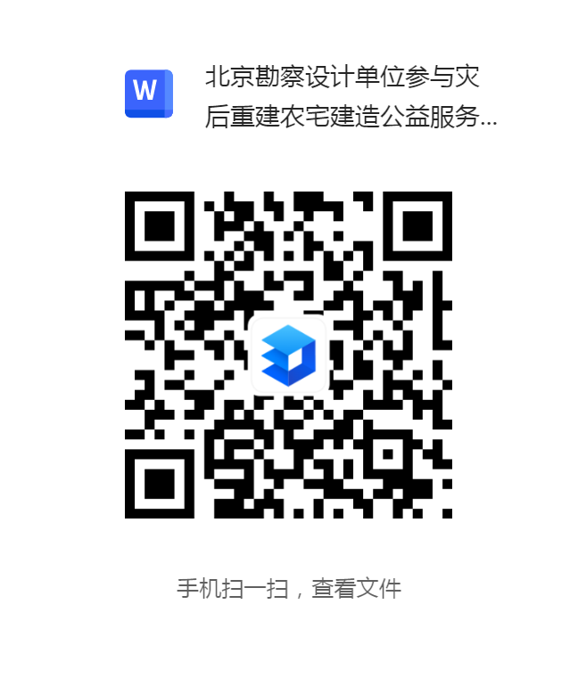 附件:北京勘察設計單位參與災后恢復重建農宅建造公益服務工作報名表(掃描下方二維碼或者點擊“閱讀原文”即可獲取)